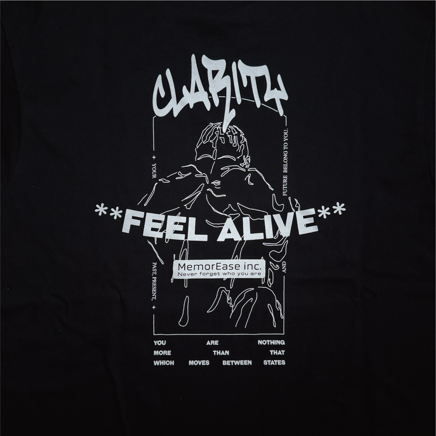 バックには「FEEL ALIVE (生を感じろ)」というメッセージをタイポグラフィとグラフィックで表現したアートワークが大胆にあしらわれています。